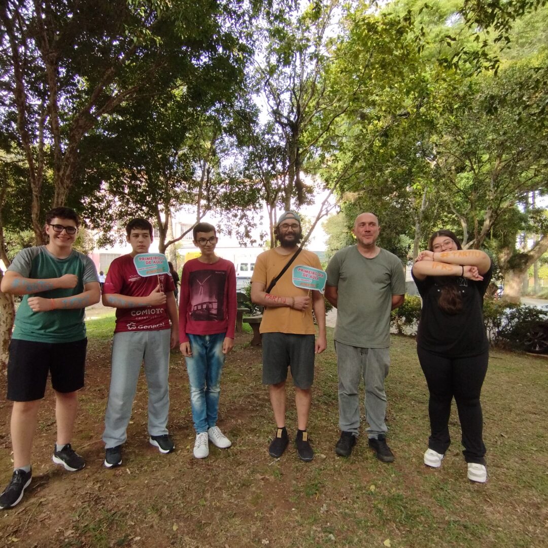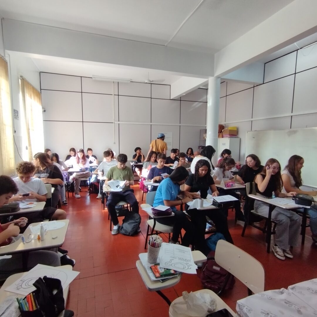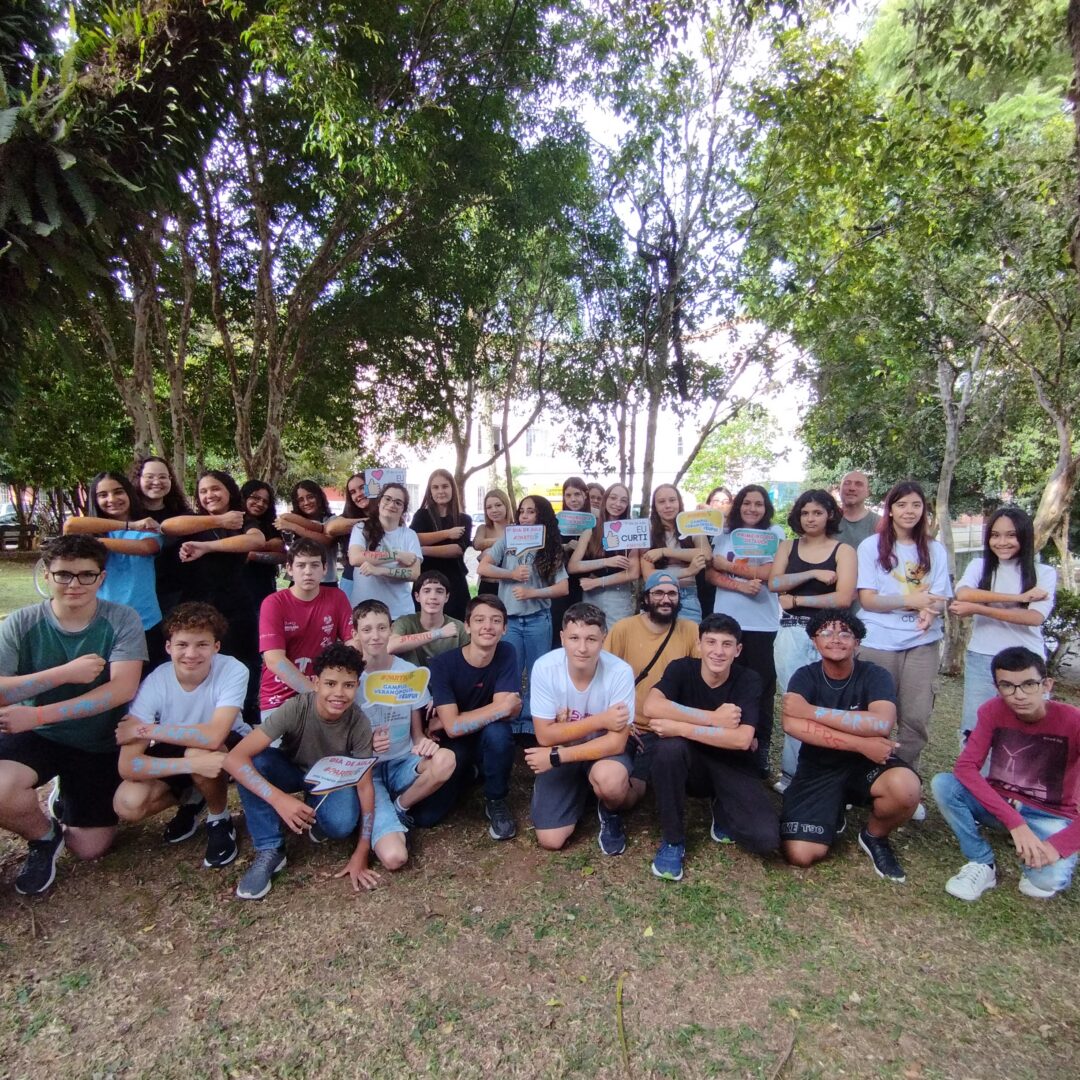 No primeiro encontro, os participantes receberam informações gerais sobre o funcionamento do programa, incluindo orientações sobre as bolsas oferecidas. A recepção contou ainda com um momento de integração, lanche e uma sessão de fotos marcada por atividades de pintura nos braços, promovendo acolhimento e interação entre os estudantes.
