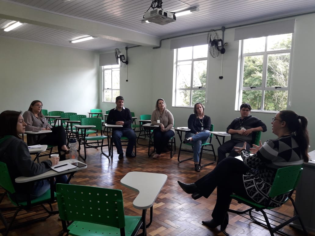 Com o objetivo de ampliar a rede de atendimentos aos estudantes do Campus Veranópolis, conversar sobre dificuldades que podem surgir no cotidiano escolar e possíveis encaminhamentos, uma roda de conversa foi realizada na manhã desta quarta-feira, 23 de outubro de 2019. A atividade foi organizada pela equipe de Assistência Estudantil. Participaram os professores do ensino médio integrado do Campus e a coordenadora do Programa de Desenvolvimento Integral ao Educando (Pradies) do município de Veranópolis, psicopedagoga Fernanda Antoniolli.
