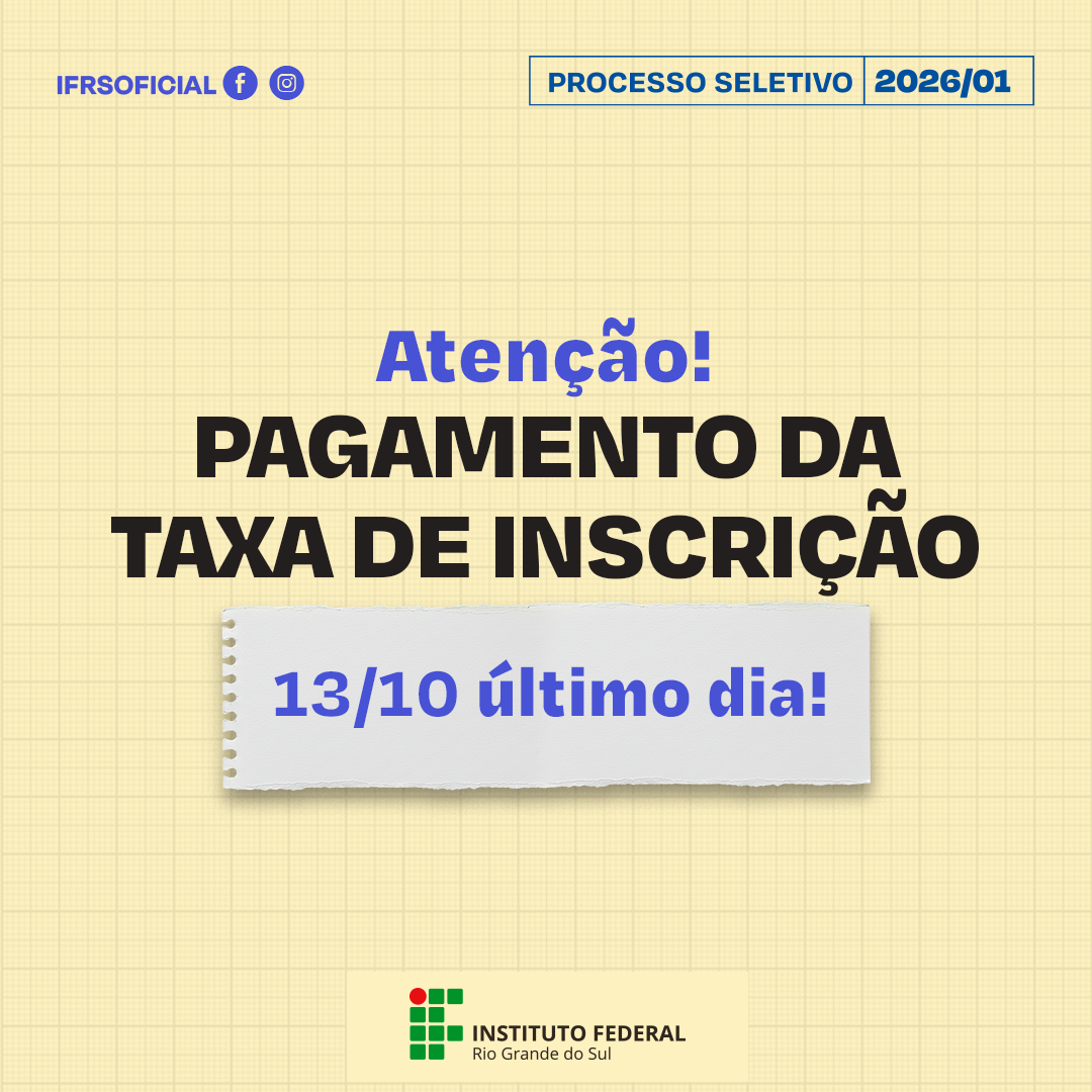 Atenção: 13 de outubro é o último dia para pagar a taxa de inscrição do Processo Seletivo 2026/01