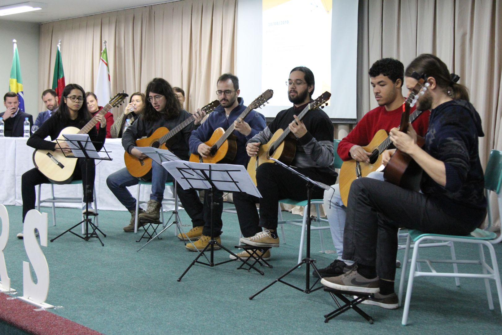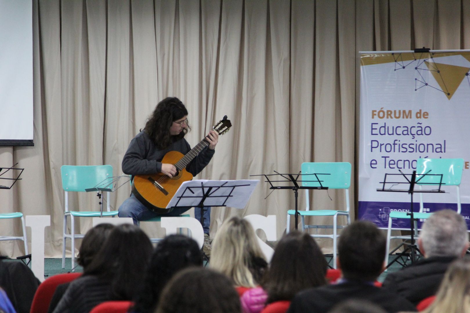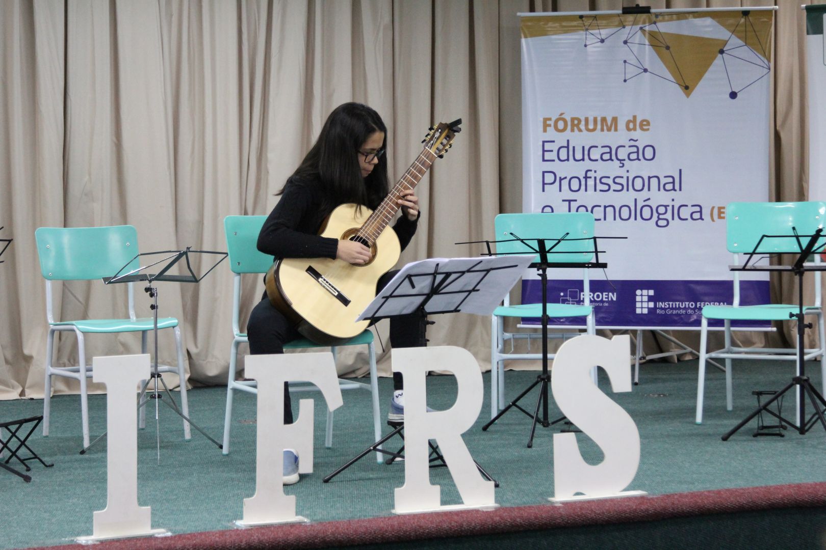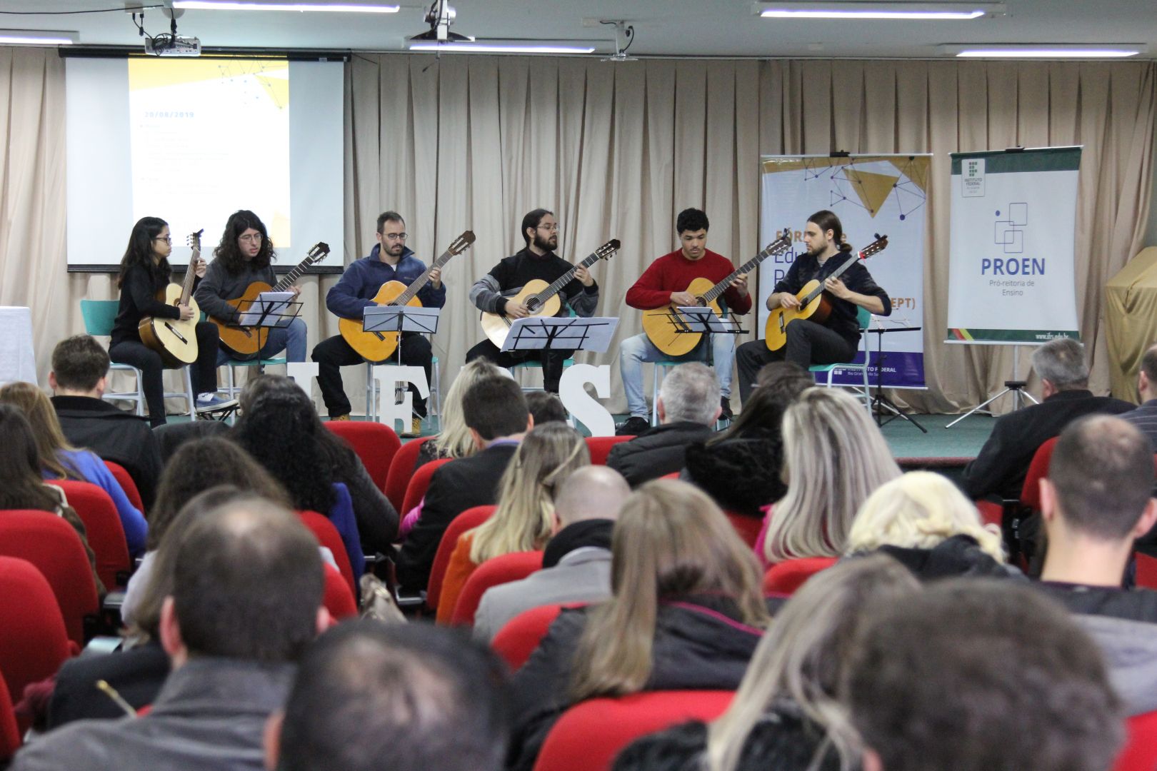 Com uma apresentação impecável e emocionante do Conjunto de Violões do Programa Prelúdio do Campus Porto Alegre do Instituto Federal do Rio Grande do Sul (IFRS), foram abertas as atividades do II Fórum de Educação Profissional e Tecnológica do IFRS na manhã desta terça-feira, 20 de agosto de 2019, no Salão de Atos do Campus Bento Gonçalves.