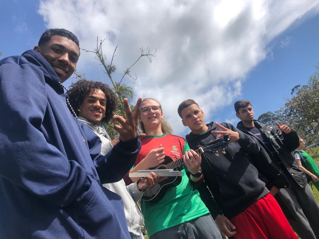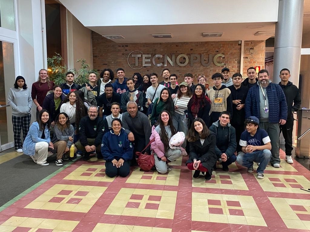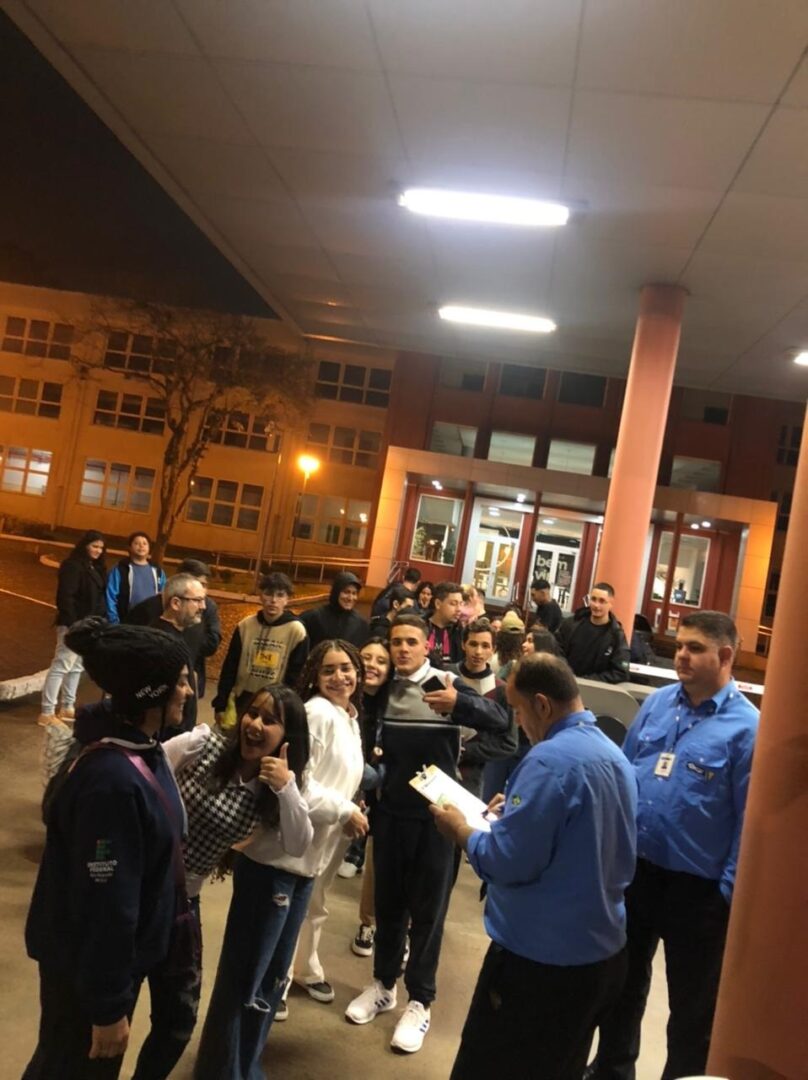 Os alunos estão acompanhados dos Professores Carlos Fabre Miranda e Iury de Almeida Accordi e pelos Técnicos Fernando dos Santos Vianna e Andréia Maria Ambrôsio de Souza Accordi do IFRS Campus Viamão.
