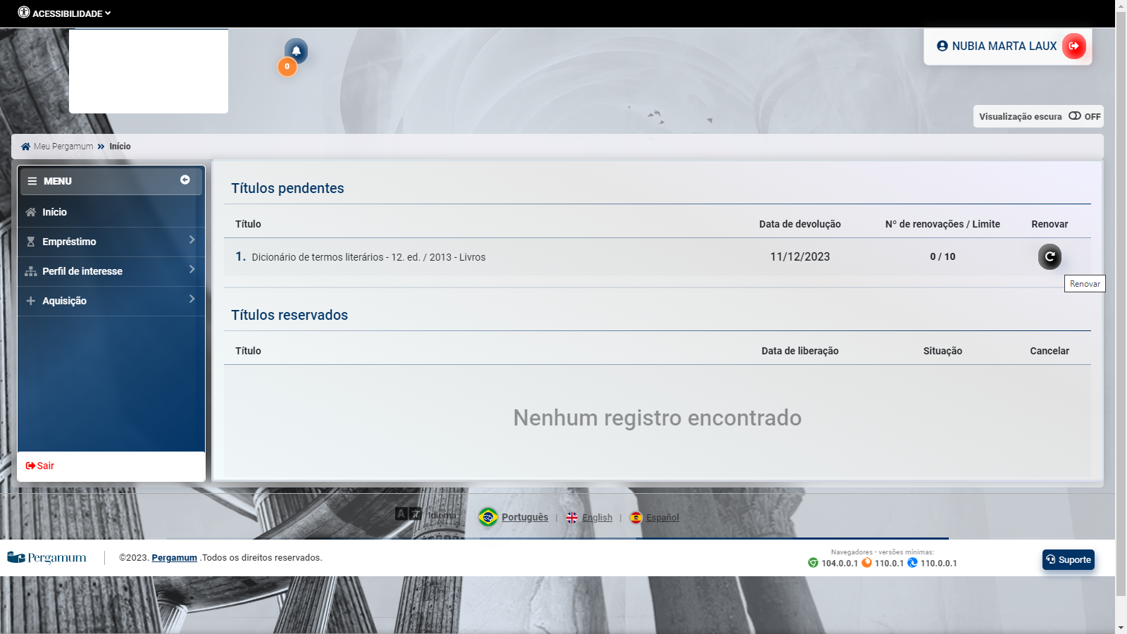 Renove seus empréstimos em Meu Pergamum.