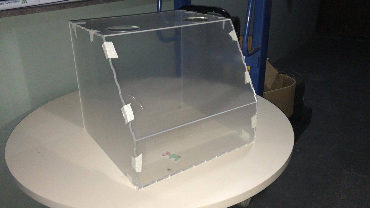 Segundo o servidor do IFRS Bruno Kenji Nishitani Egami, coordenador da oficina de Tecnologia Assistiva do CTA, a confecção é relativamente simples e o custo do material fica em torno de R$ 200,00 por aerosol box. “São utilizadas chapas de acrílico de 5mm, transparentes, e uma máquina de corte a laser. Após o recorte, as partes são unidas com cola específica para acrílico, faz-se a secagem, a higienização e as caixas são colocadas à disposição”, explica.