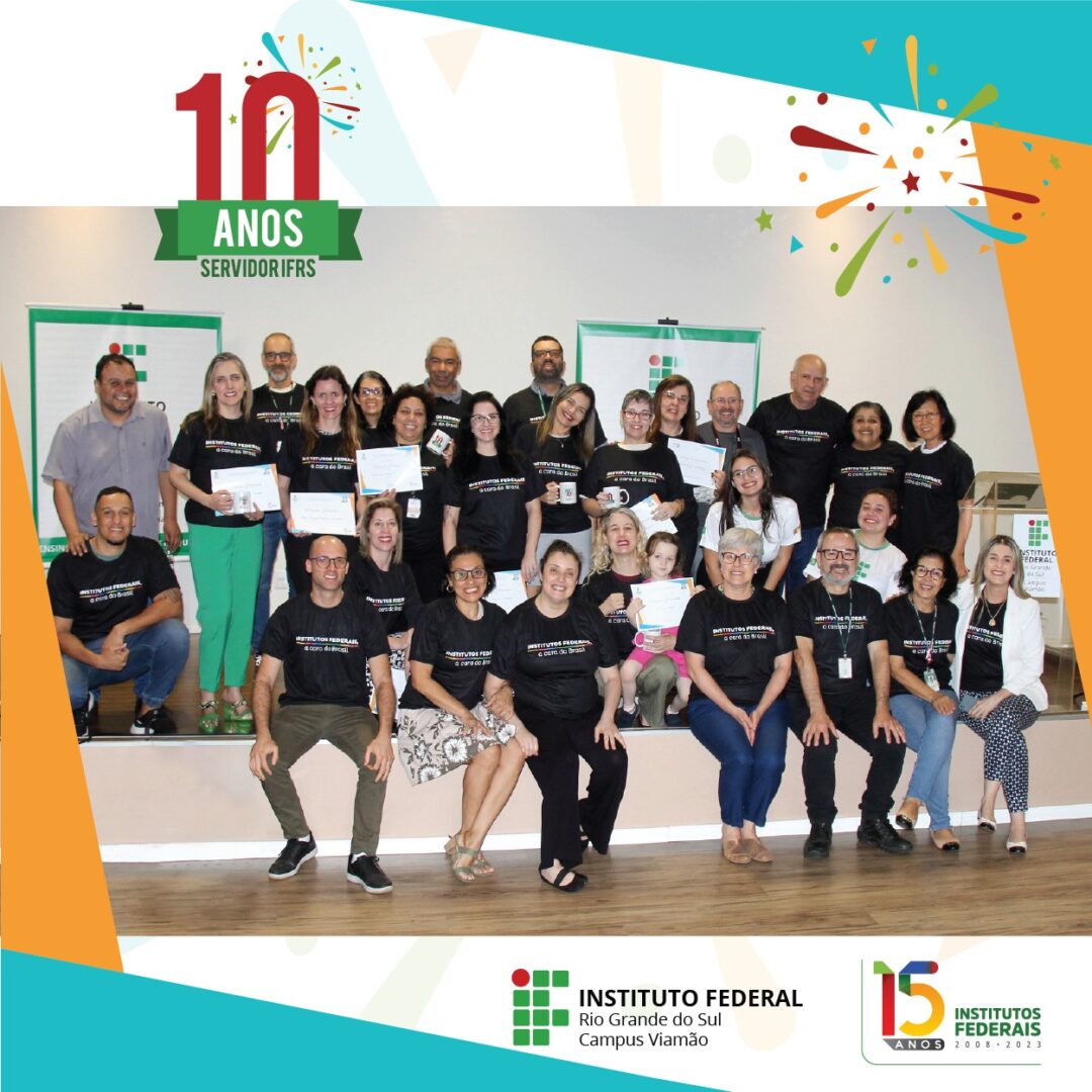 O Campus Viamão do Instituto Federal de Educação, Ciência e Tecnologia do Rio Grande do Sul (IFRS) realizou, na última terça-feira (29), a cerimônia “Servidor 10 anos”, para homenagear servidores com uma década ou mais de atuação no serviço público federal e comemorar os 15 anos dos Institutos Federais.