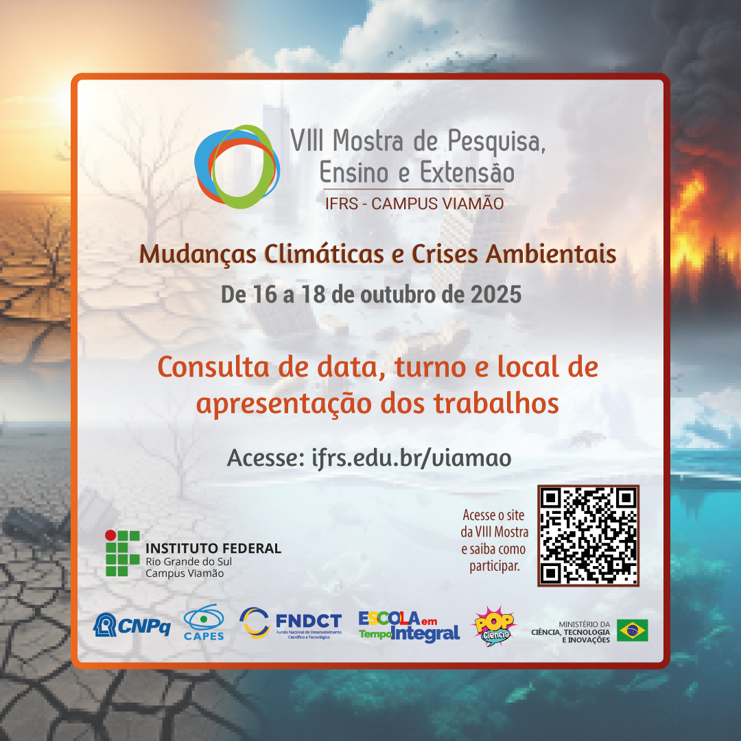 Campus Viamão informa data, turno e local das apresentações da VIII Mostra de Pesquisa, Ensino e Extensão