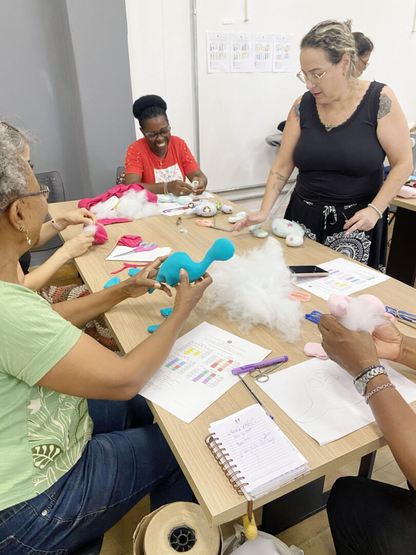 A iniciativa integra o Programa Entre Linhas e Laços, que promove autonomia e empoderamento por meio da educação, da reutilização de materiais e do desenvolvimento de habilidades produtivas.