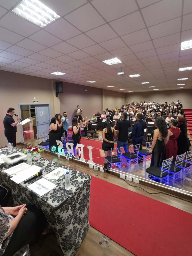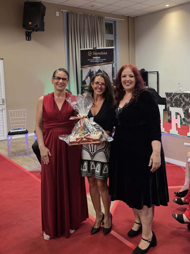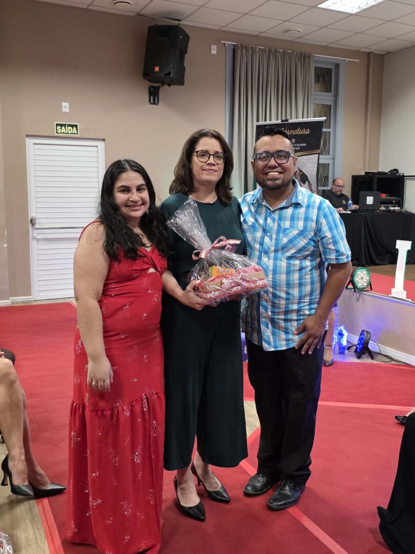 Os formandos também prestaram homenagens à paraninfa Camila Vieira Müller, às professoras Clarissa Santana e Josiane Roberta Krebs e à técnica-administrativa Leda Maria Pereira da Silveira.