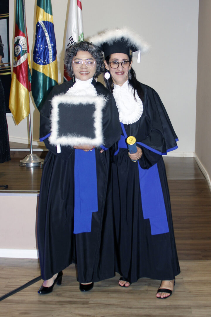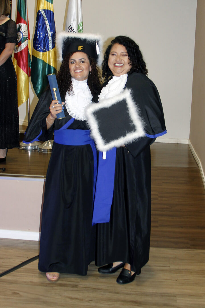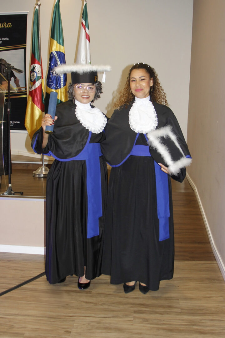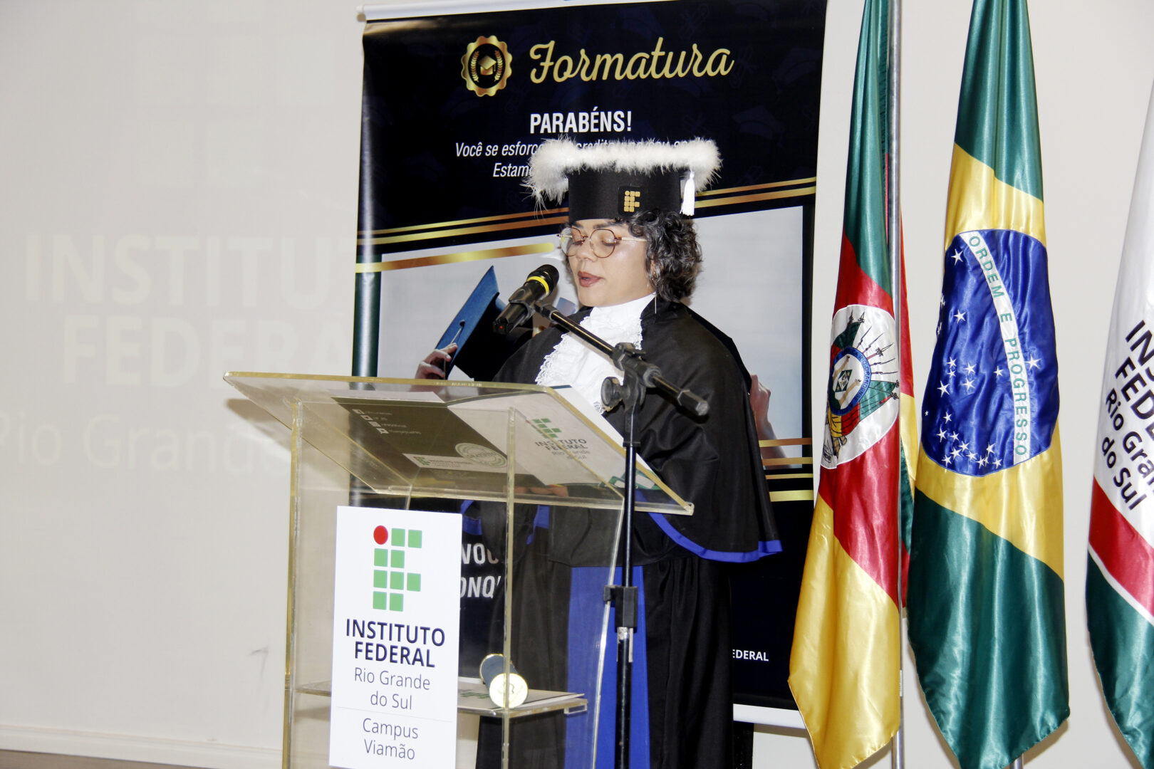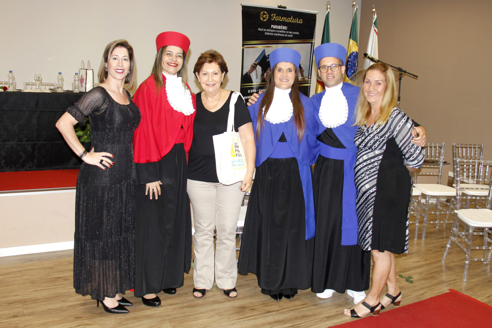 Entre os homenageados estavam os professores Adriano Andrejew Ferreira e Marise Keller dos Santos, além da coordenadora do curso e do paraninfo. A leitura da ata ficou a cargo da Coordenadora de Registros Acadêmicos, Leda Maria Pereira da Silveira. Representando a turma, a formanda Rosélia Castro proferiu o discurso como oradora, enquanto Jenifer Moretto Graboski realizou o juramento institucional. A cerimônia foi conduzida pela servidora Janaína Barbosa Ramos, que atuou como cerimonialista.
