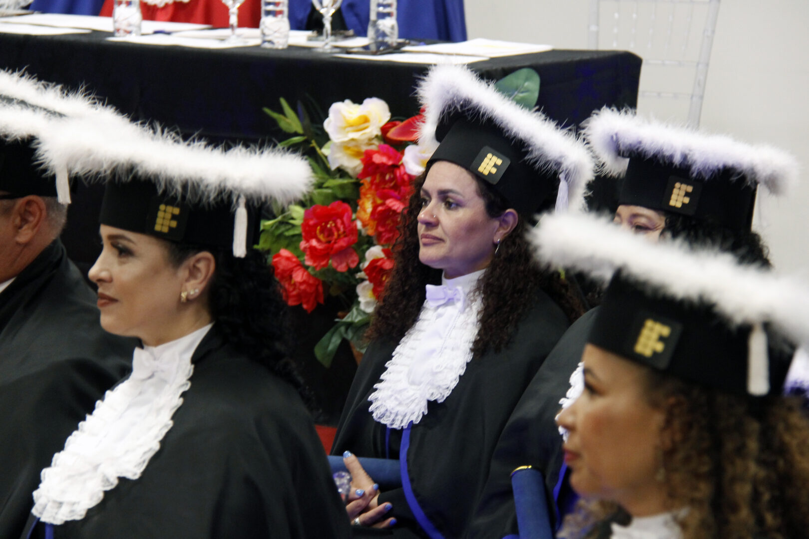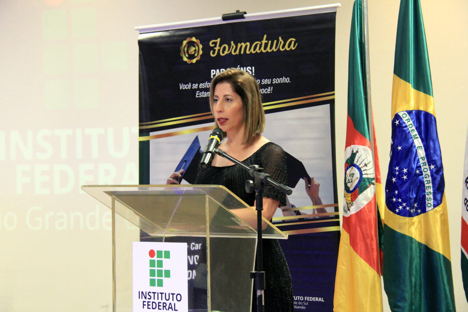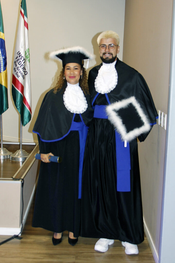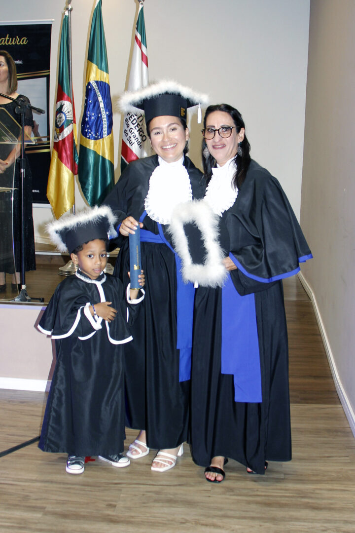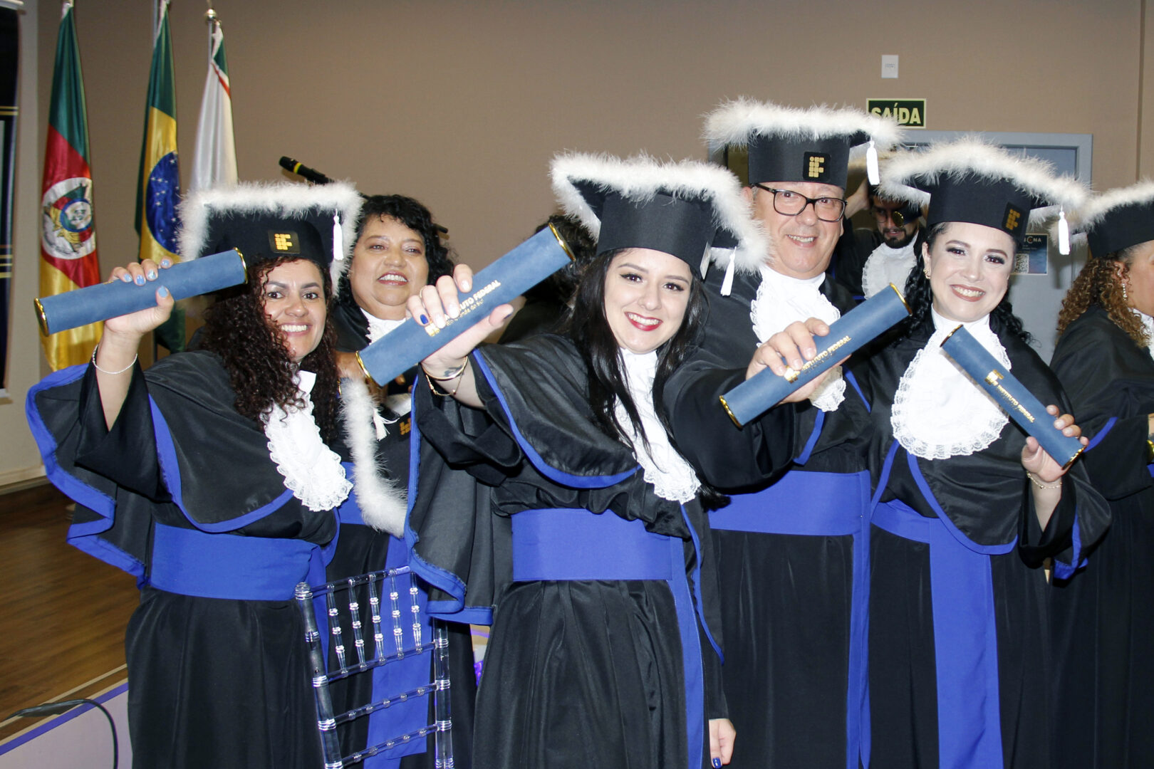 Entre os homenageados estavam os professores Adriano Andrejew Ferreira e Marise Keller dos Santos, além da coordenadora do curso e do paraninfo. A leitura da ata ficou a cargo da Coordenadora de Registros Acadêmicos, Leda Maria Pereira da Silveira. Representando a turma, a formanda Rosélia Castro proferiu o discurso como oradora, enquanto Jenifer Moretto Graboski realizou o juramento institucional. A cerimônia foi conduzida pela servidora Janaína Barbosa Ramos, que atuou como cerimonialista.