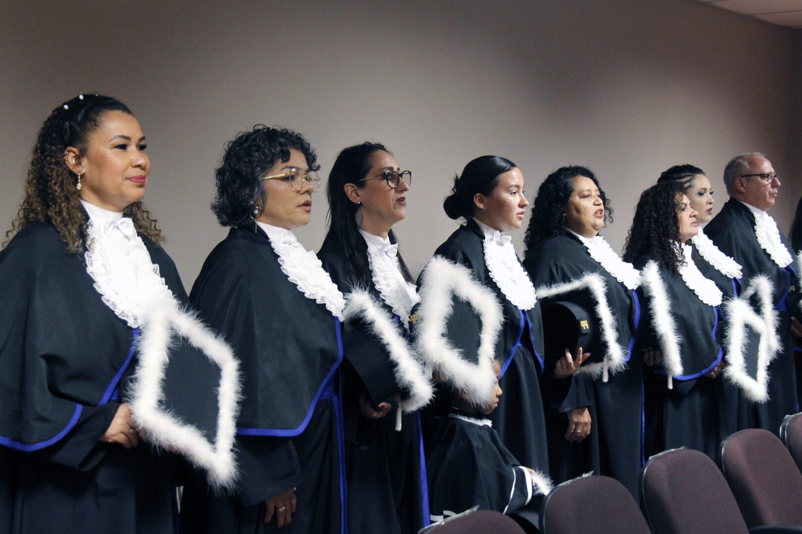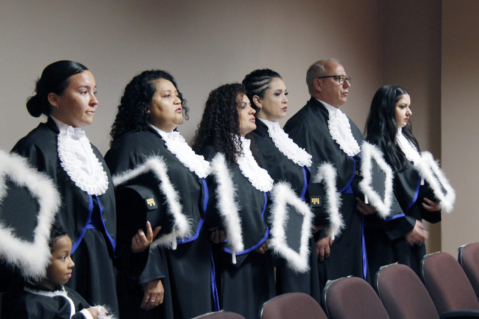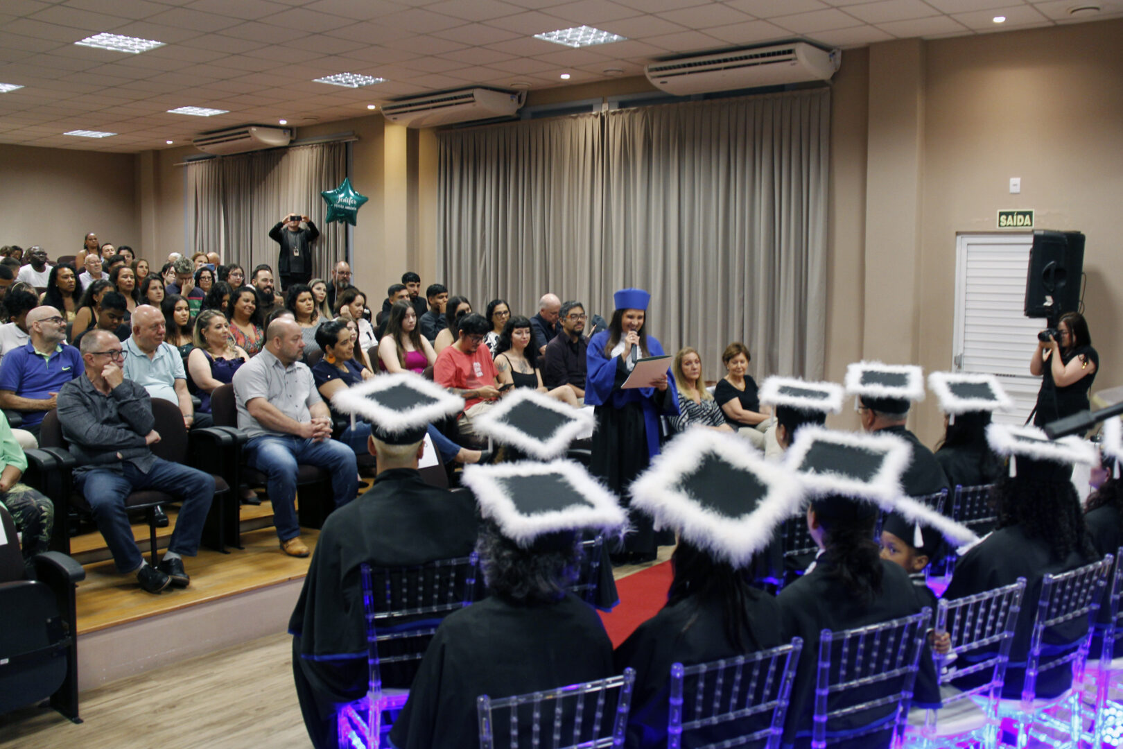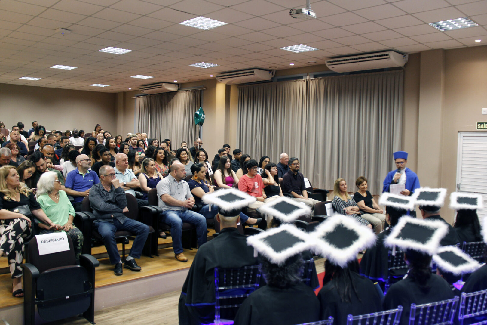 Entre os homenageados estavam os professores Adriano Andrejew Ferreira e Marise Keller dos Santos, além da coordenadora do curso e do paraninfo. A leitura da ata ficou a cargo da Coordenadora de Registros Acadêmicos, Leda Maria Pereira da Silveira. Representando a turma, a formanda Rosélia Castro proferiu o discurso como oradora, enquanto Jenifer Moretto Graboski realizou o juramento institucional. A cerimônia foi conduzida pela servidora Janaína Barbosa Ramos, que atuou como cerimonialista.