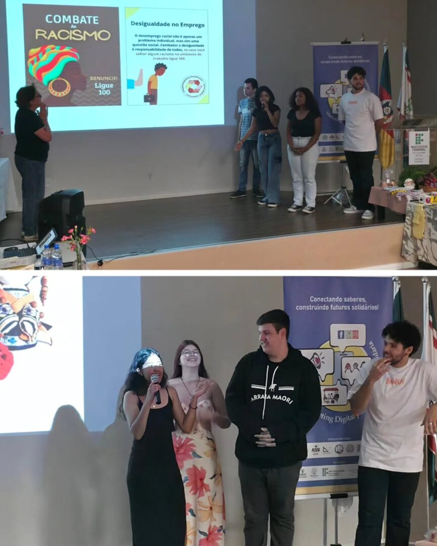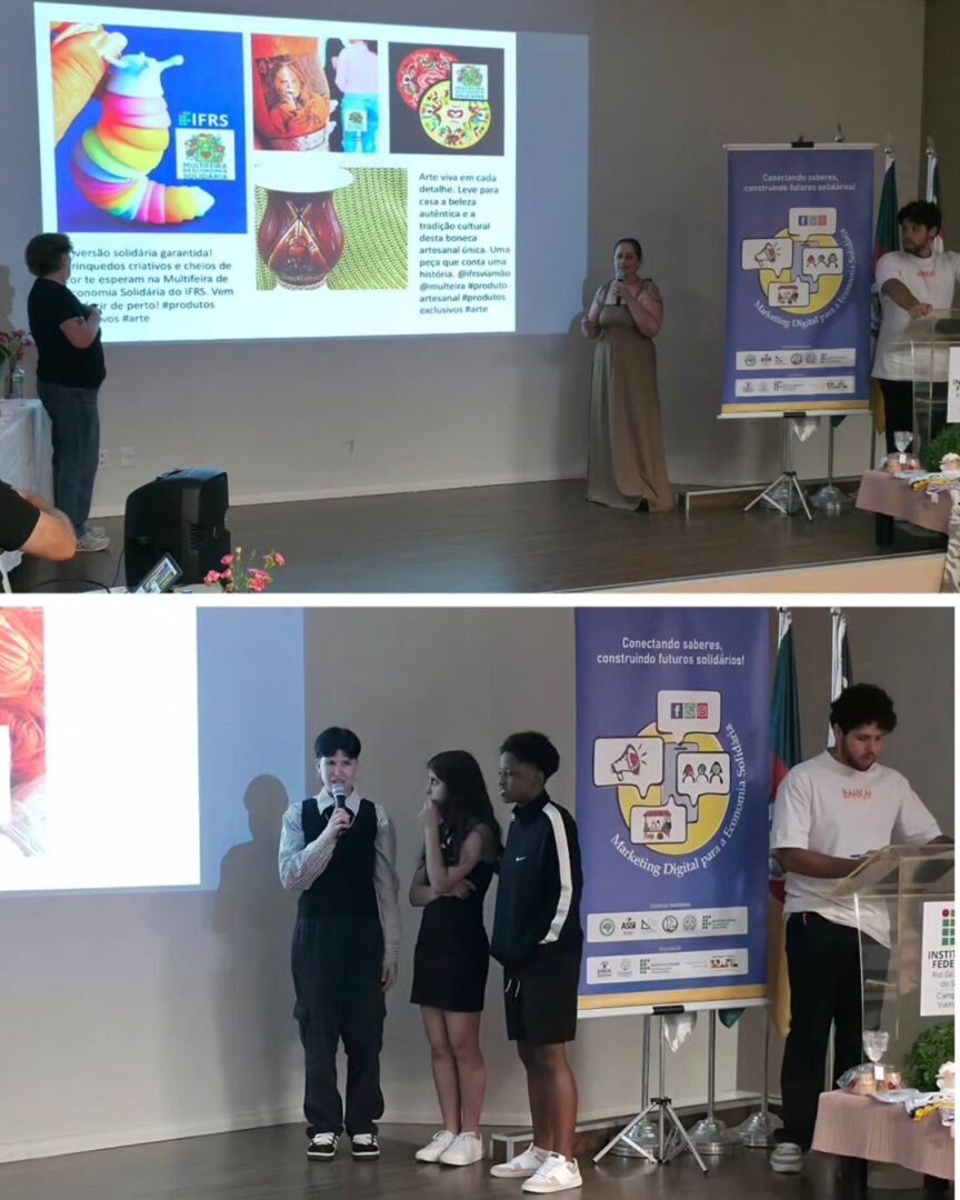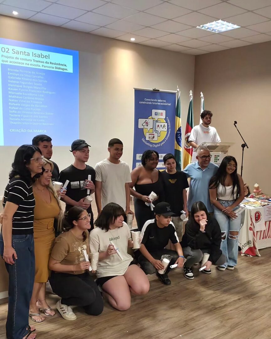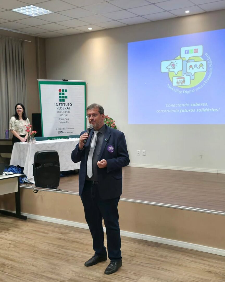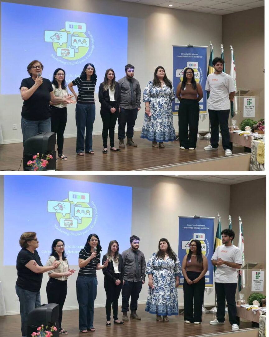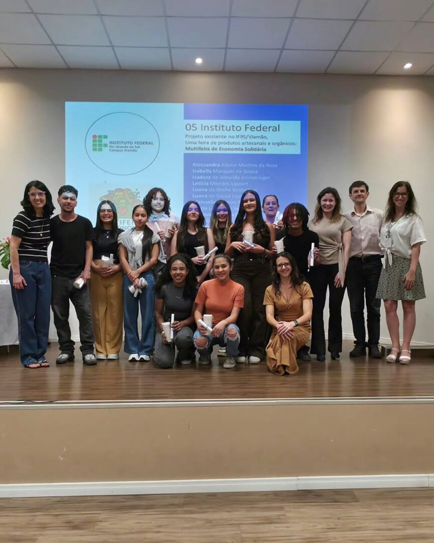 O Campus Viamão do Instituto Federal de Educação, Ciência e Tecnologia do Rio Grande do Sul (IFRS) realizou, em 23 de outubro, o evento de conclusão do curso de extensão Marketing Digital para a Economia Solidária. A atividade ocorreu no auditório do campus e reuniu estudantes, professores, representantes das escolas parceiras, autoridades e apoiadores do projeto.