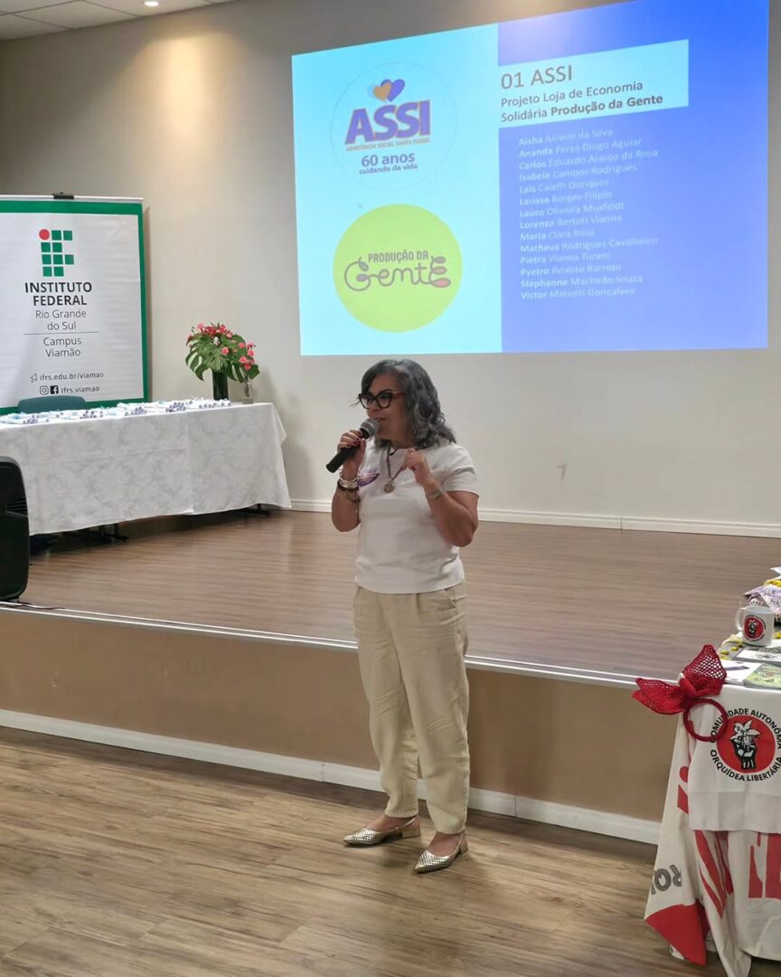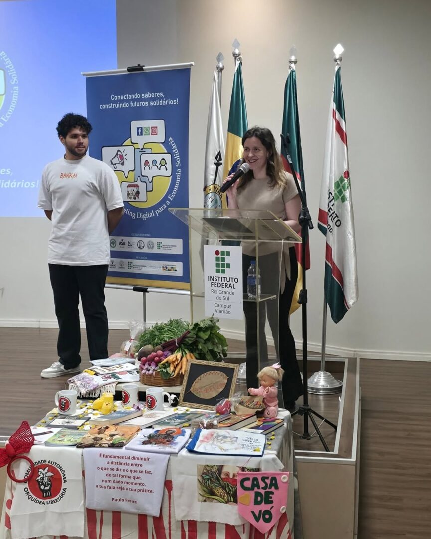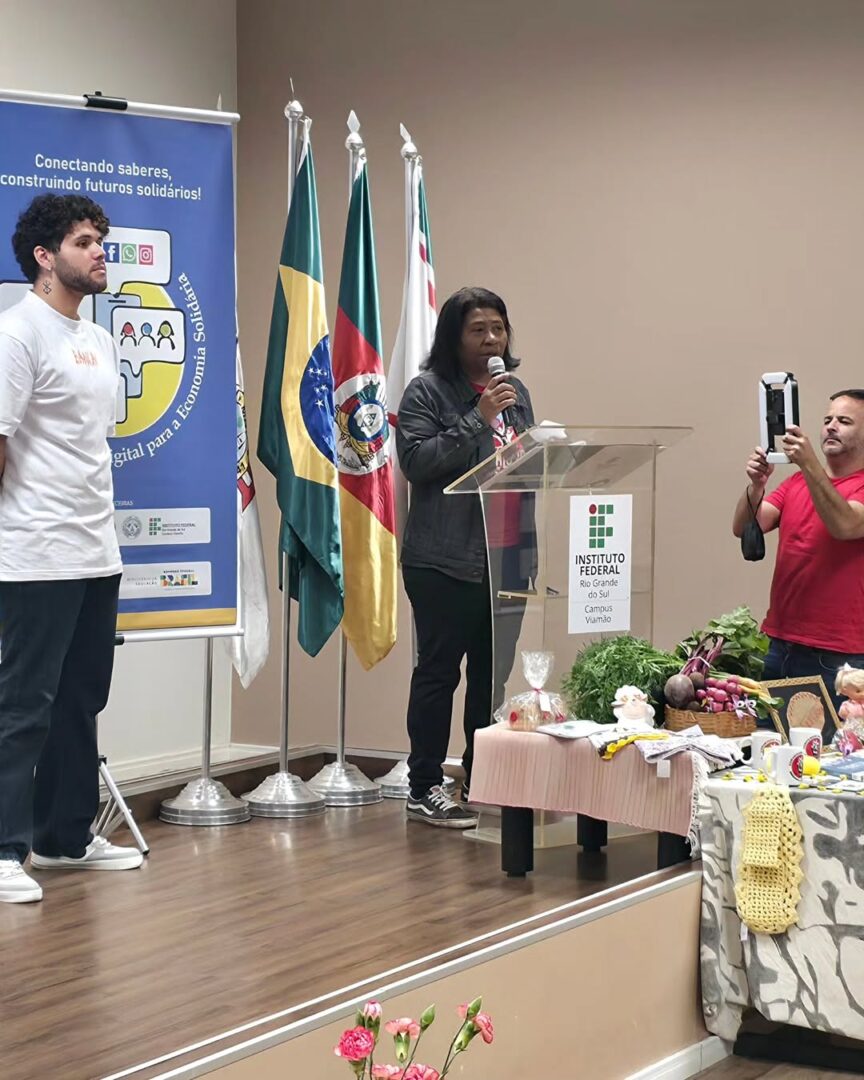 O evento contou com a presença da coordenadora do curso, Ana Denise Rodrigues, da vice-coordenadora, Nidiana Pohl, da coordenadora de Extensão do campus, Luiza Bortoli Foschiera, e da idealizadora do projeto, professora Karla Renée, do coletivo Diálogos de Resistência. Também estiveram presentes representantes do Fórum Gaúcho da Economia Solidária, do Programa Ecoviamão, de empreendimentos econômicos solidários de Viamão, das escolas e instituições parceiras e bolsistas do projeto.