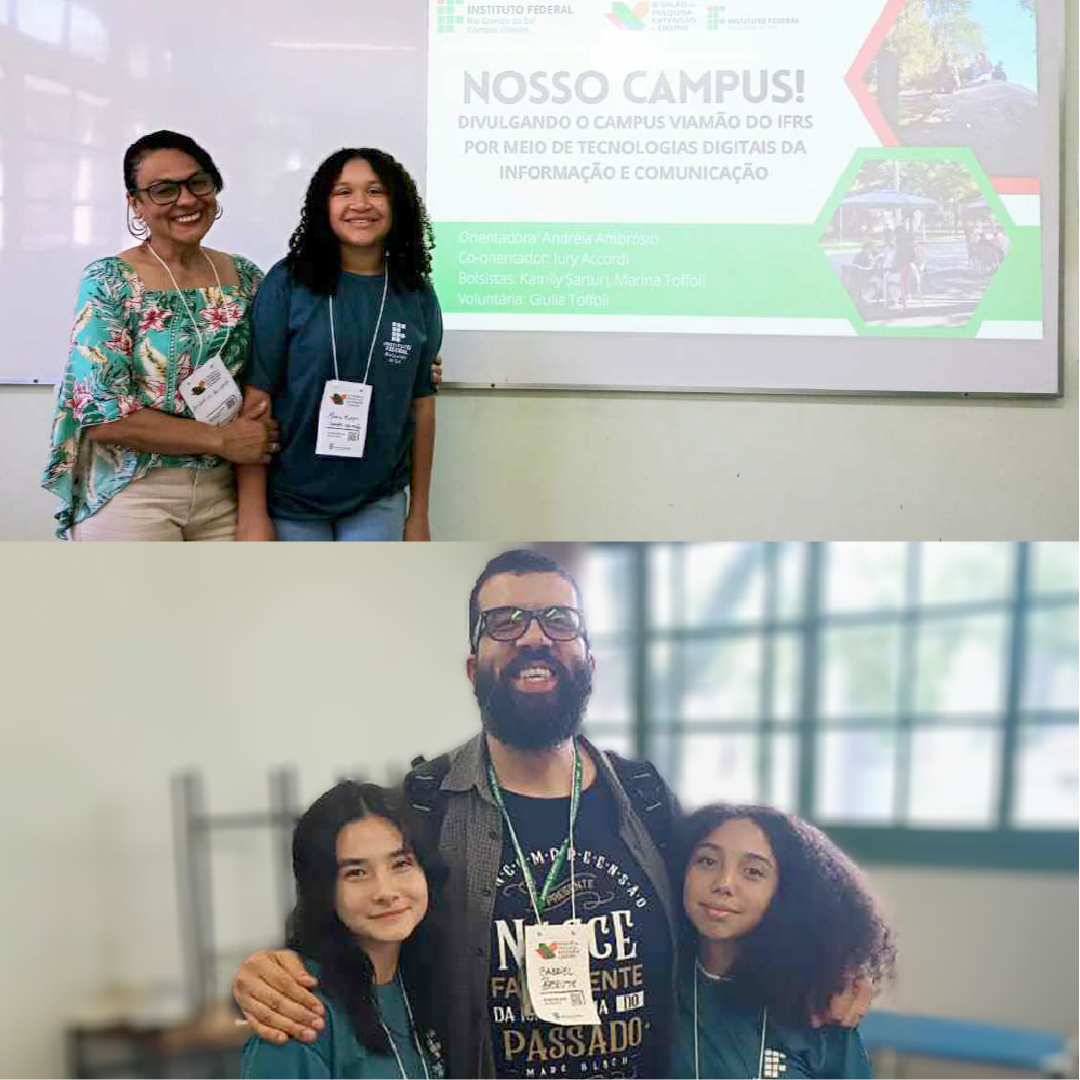 Estudantes, professores e técnicos-administrativos do Campus Viamão do Instituto Federal do Rio Grande do Sul (IFRS) marcaram presença no 8º Salão de Pesquisa, Extensão e Ensino do IFRS, nos dias 23 e 24 de novembro, no Campus Bento Gonçalves. O evento é um espaço de integração entre os participantes que fazem parte das 18 unidades do IFRS, no qual são compartilhados conhecimentos e experiências produzidos por meio da pesquisa, da extensão e do ensino, nas diferentes áreas do conhecimento. Esta foi a maior edição do Salão, com 1.236 inscritos, e contou com uma intensa programação, como: apresentações de trabalhos, oficina de equoterapia, visitas pelo campus e muitas atividades artísticas.