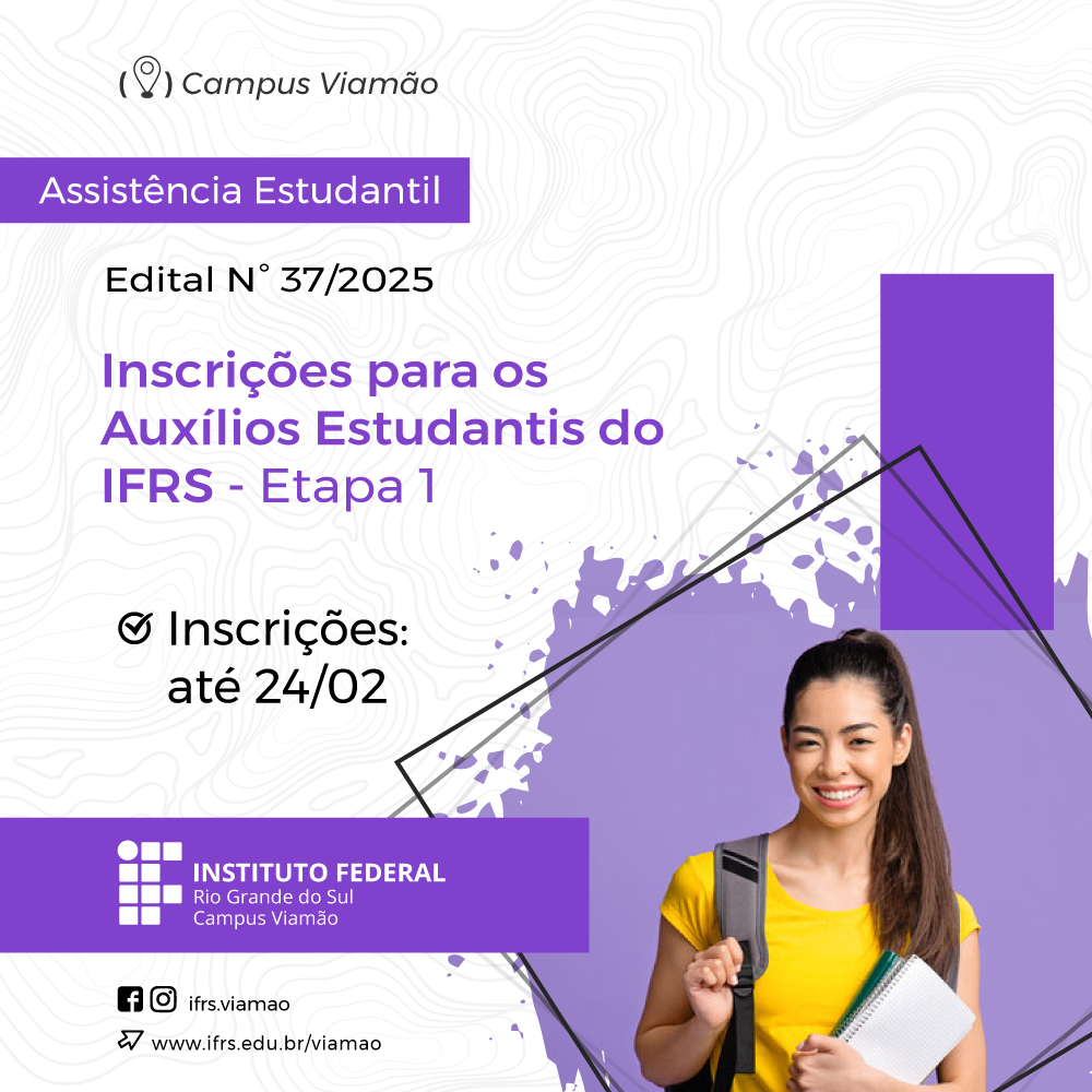 Estão abertas, a partir desta segunda-feira, 2 de fevereiro, as inscrições da Etapa 1 dos Auxílios Permanência e Moradia para o período letivo de 2026 no Campus Viamão do Instituto Federal de Educação, Ciência e Tecnologia do Rio Grande do Sul (IFRS). O prazo segue até 24 de fevereiro e é destinado a estudantes matriculados no período letivo em andamento.