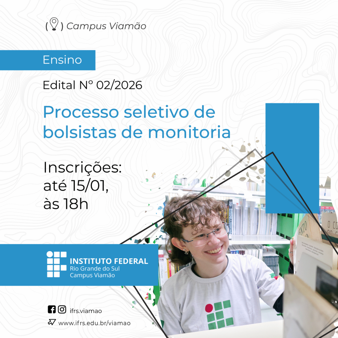 O Campus Viamão do Instituto Federal (IFRS) está com inscrições abertas para o processo seletivo de bolsistas de monitoria acadêmica, conforme o Edital Nº 02/2026. A seleção é destinada a estudantes regularmente matriculados nos cursos técnicos e superiores da unidade.