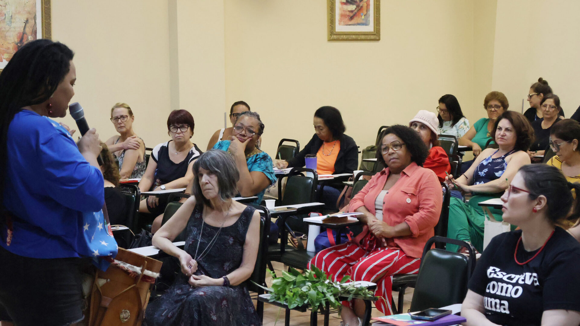 O primeiro encontro foi marcado por atividades formativas voltadas à mediação de leitura. A programação incluiu a palestra “A escrevivência de mulheres negras na literatura brasileira”, ministrada pela escritora e professora Ana dos Santos, e a oficina “Brincadeira da peneira: oralidade e literatura”, conduzida pela atriz e professora de teatro Dedy Ricardo. As ações abordaram relações entre literatura, oralidade e performance, com foco na prática dos participantes.