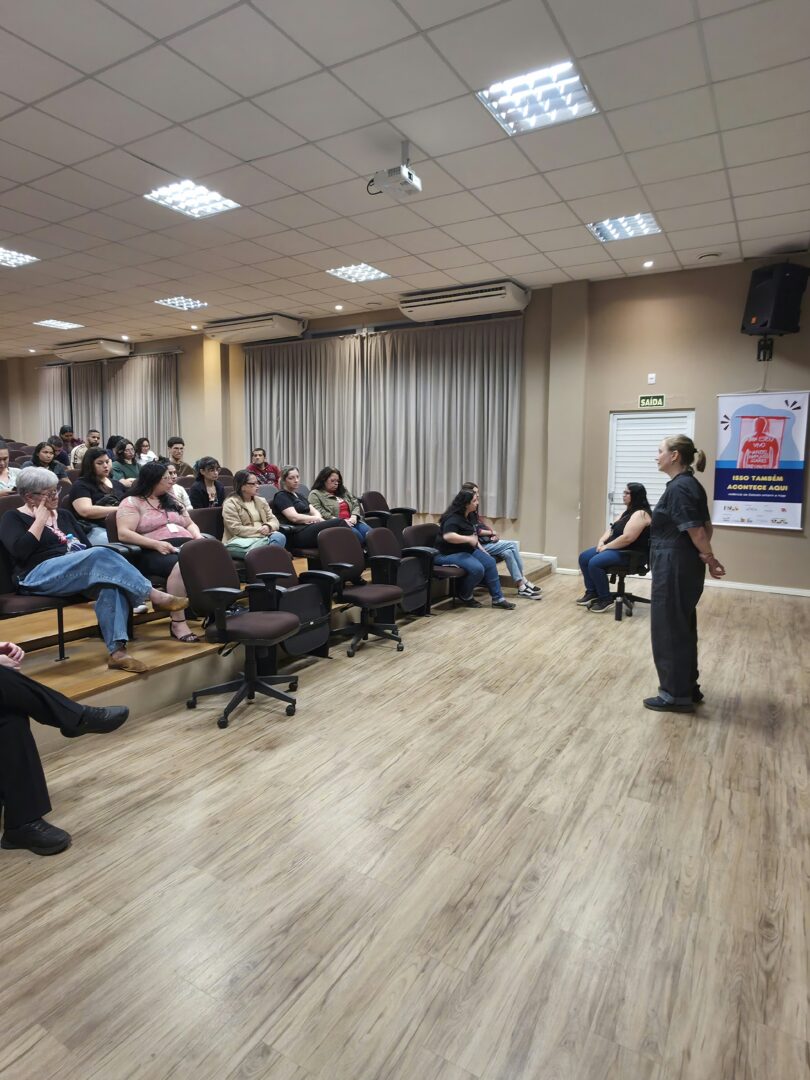 O Campus Viamão do Instituto Federal de Educação, Ciência e Tecnologia do Rio Grande do Sul (IFRS) recebeu, na quarta-feira, 15 de outubro, a palestra-performance “Dopinho: um lugar de memórias sensíveis”, apresentada pela atriz e pesquisadora Marta Haas. A atividade integrou o projeto “Isso também acontece aqui”, selecionado pelo Edital SEDAC nº 28/2024 – Cultura e Educação (PNAB-RS), e reuniu estudantes e servidores no auditório do campus.