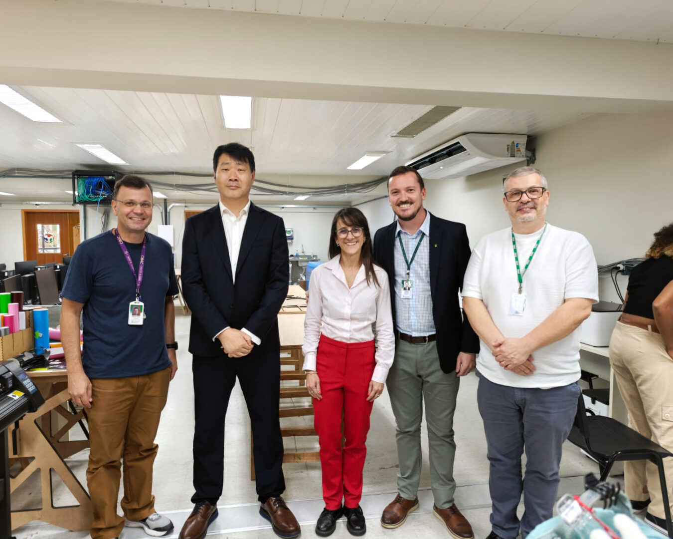 A visita incluiu também o Campus Porto Alegre do IFRS, onde o grupo conheceu o PoaLab, Laboratório de Fabricação Digital, acompanhado do diretor do campus, Sérgio Viana, e do coordenador do laboratório, professor André Peres.