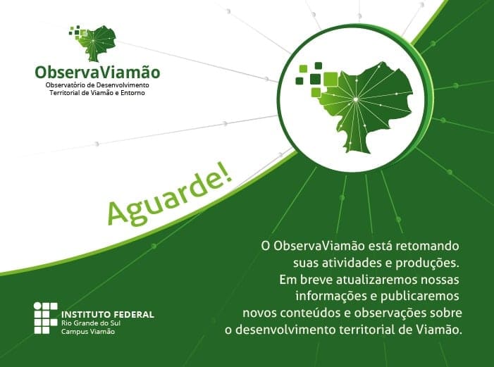 O Observatório do Desenvolvimento Territorial de Viamão e seu entorno (ObservaViamão) encaminha seu terceiro ano com a publicação de duas novas Notas Técnicas, outras duas em construção, com subsídios ao futuro Atlas Socioambiental de Viamão, com a realização de uma parceria com a comunidade da Escola Estadual Farroupilha e finalizando os procedimentos e regulamentos para receber e publicar Notas Técnicas de pessoas externas à equipe do Observatório.