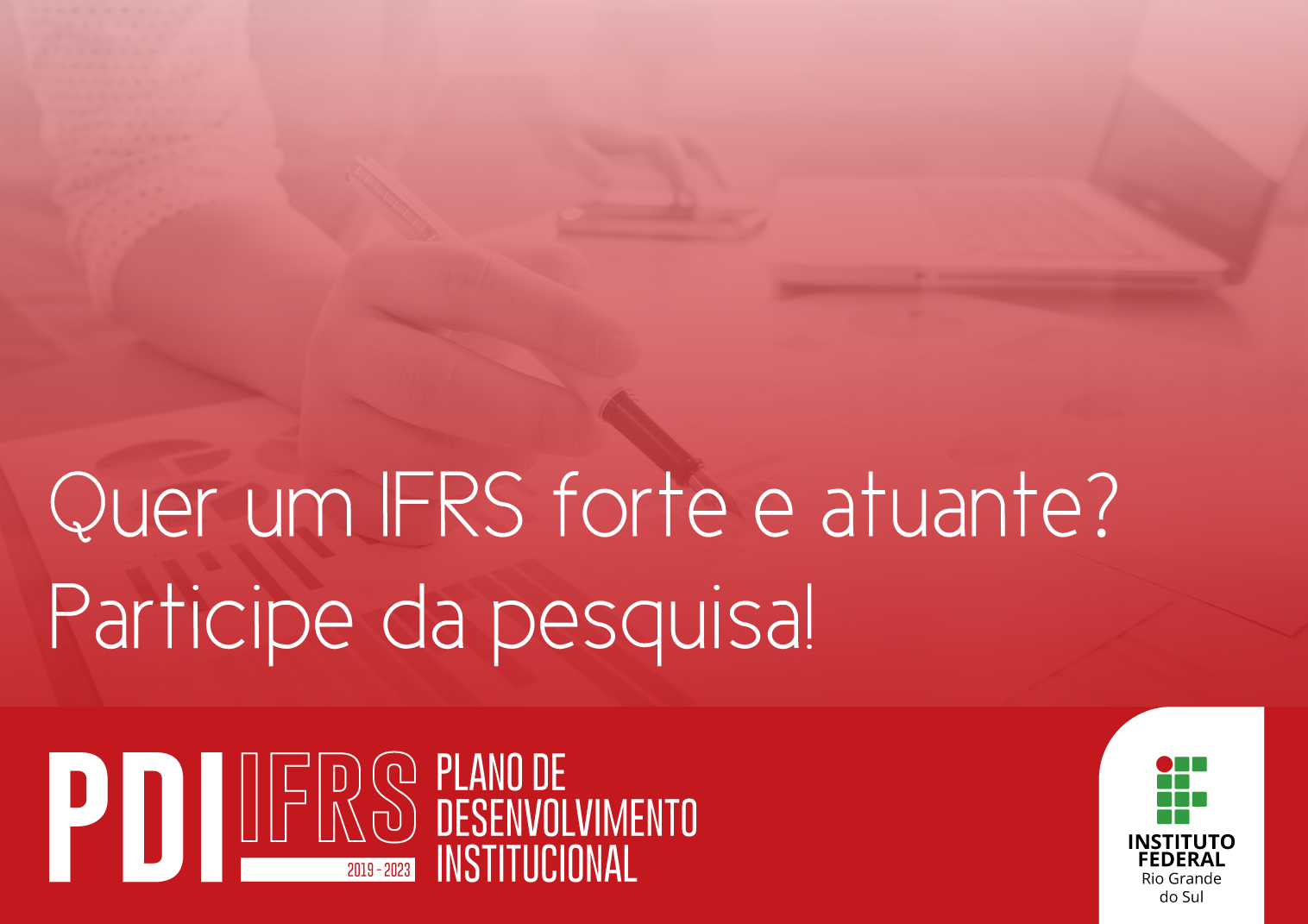 O PDI é o documento que orienta os próximos passos do IFRS. A partir das definições nele contidas, a instituição estabelece metas e organiza sua atuação para cumprir sua missão institucional. O plano é obrigatório por lei e serve como ferramenta de gestão e planejamento. Anualmente, os capítulos 5, que trata da oferta de cursos e vagas, e 6, que aborda a infraestrutura, são revisados.