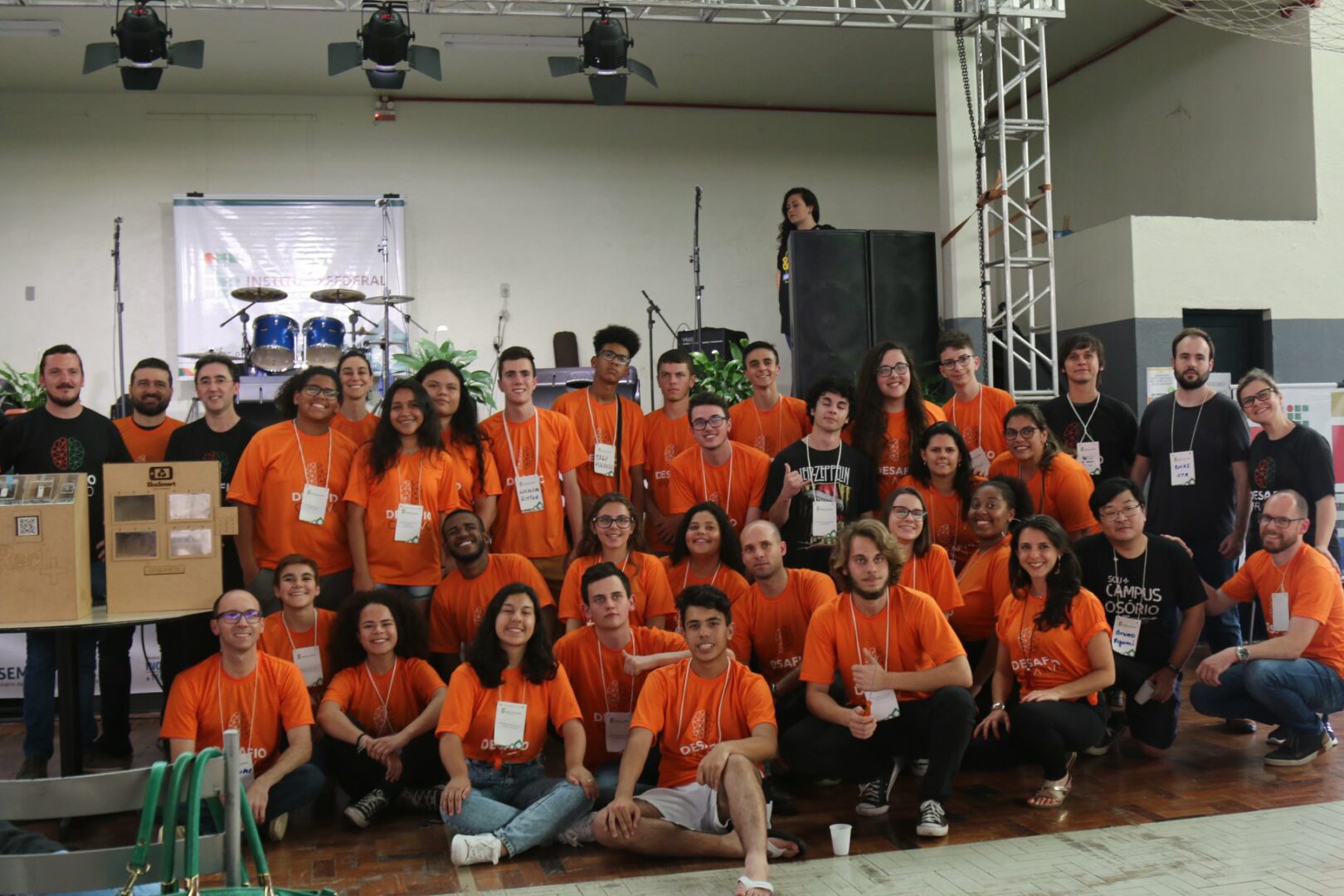 Mais uma atração foi a apresentação dos protótipos desenvolvidos pelos 27 estudantes que participaram do 2º Desafio Criativo. Divididos em três equipes, eles fizeram uma maratona para pensar e criar “Soluções para um mundo sustentável”. Esbanjaram criatividade, inovação e empreendedorismo, apresentando materiais que podem melhorar o recolhimento, o reaproveitamento e a reciclagem de materiais. Os vídeos que resumem os projetos serão divulgados nos próximos dias no site do IFRS.