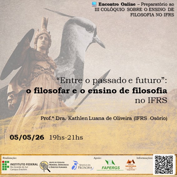 - Palestra: “Entre o passado e futuro: o filosofar e o ensino de filosofia no IFRS”